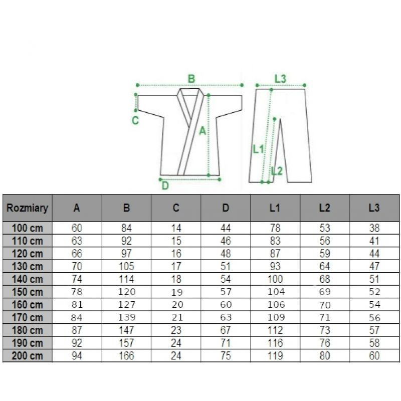 - BLOUSE: řez pro kyokushin karate, s 3/4 rukávy, má boční rozparky