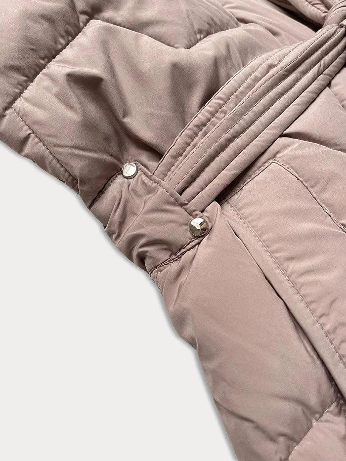 Béžová dámská bunda pro přechodné období s páskem model 21248446 - J.STYLE