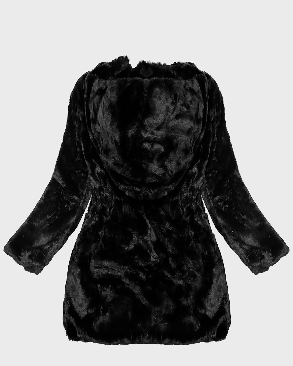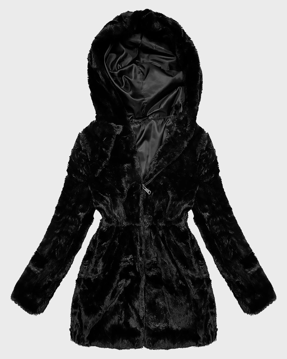 Černá dámská kožešinová bunda s kapucí model 21757977 - S'WEST