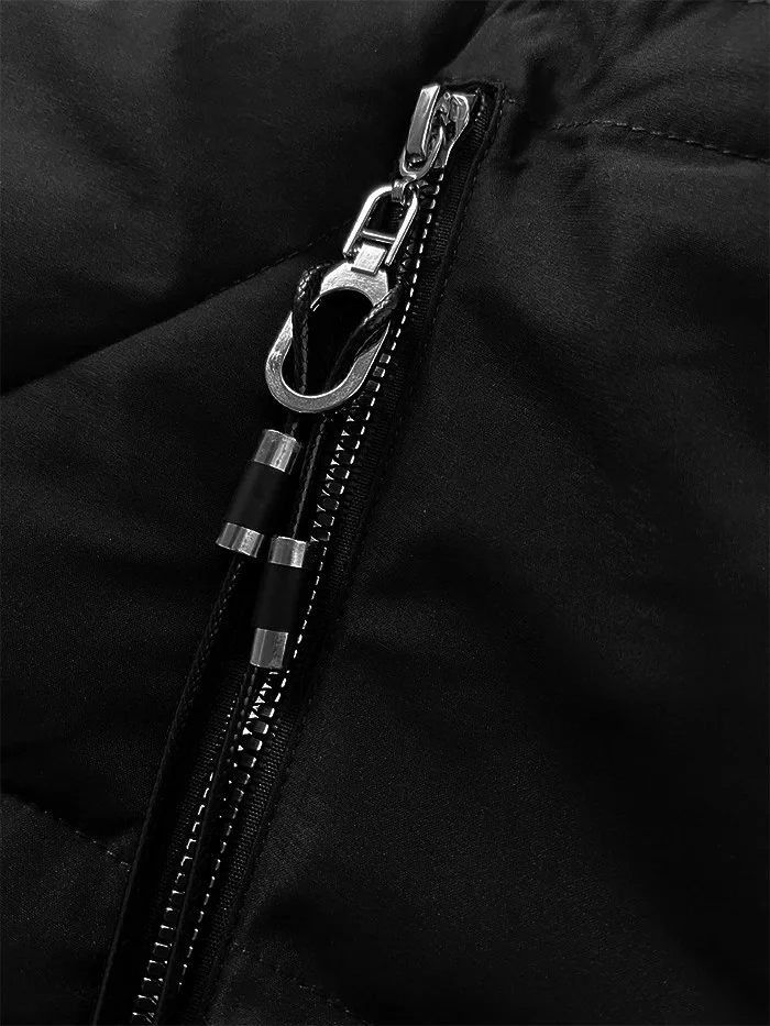 Bunda je vypasovaná, je zateplená syntetickou péřovou výplní, má dvě kapsy a zapíná se dvousměrným zipem. Model má kapuci olemovanou kožešinou. Zatímco kapuci není možné odepnout, kožešinu odepnout lze. Bunda má délku pod boky.