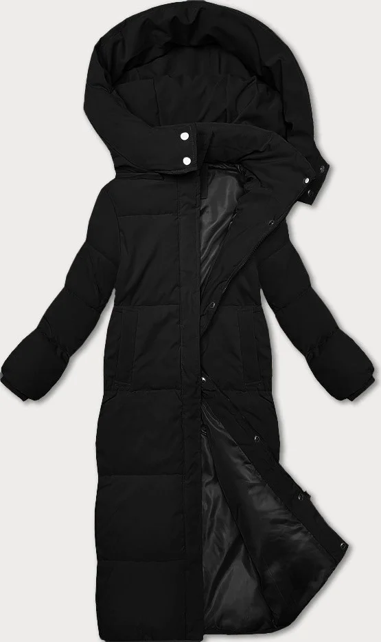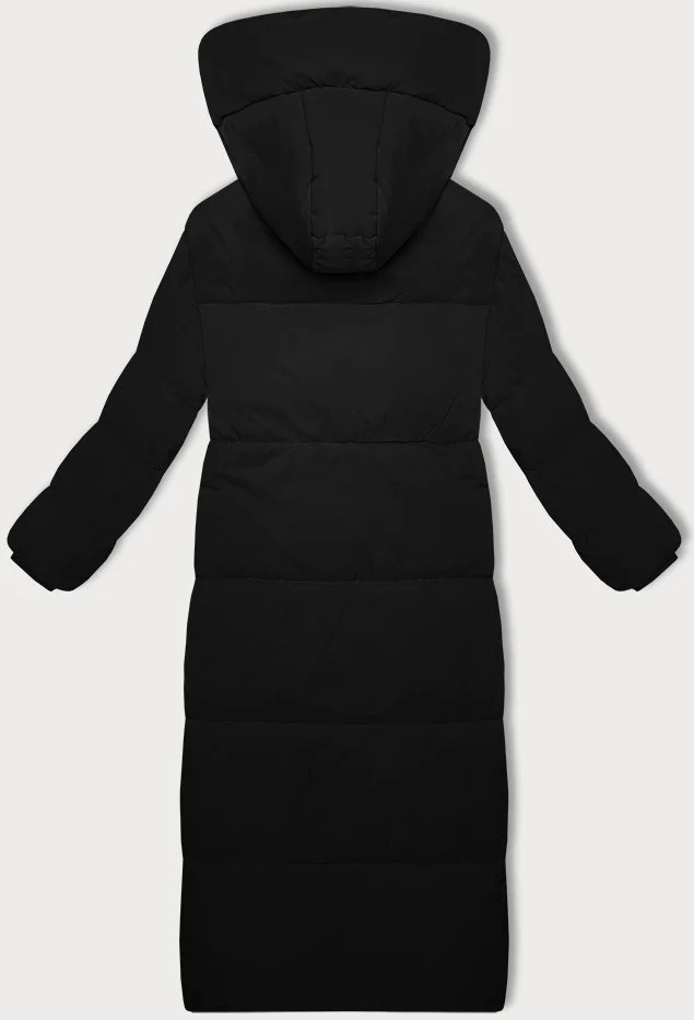 Černá dlouhá bunda - kabát s jednoduchým střihem (WD202229)