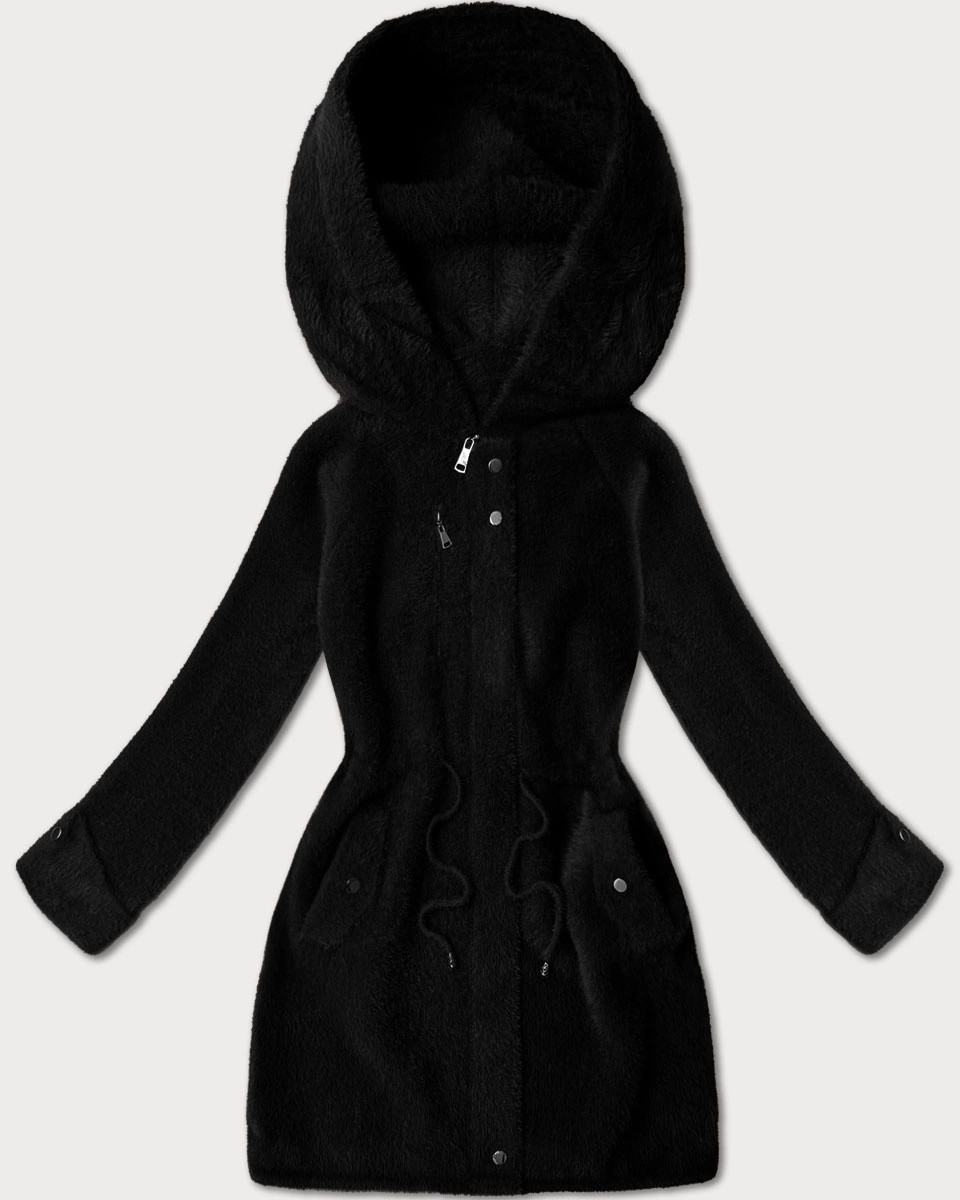 Černá vlněná bunda typu alpaka s kapucí model 21482427 - MHM