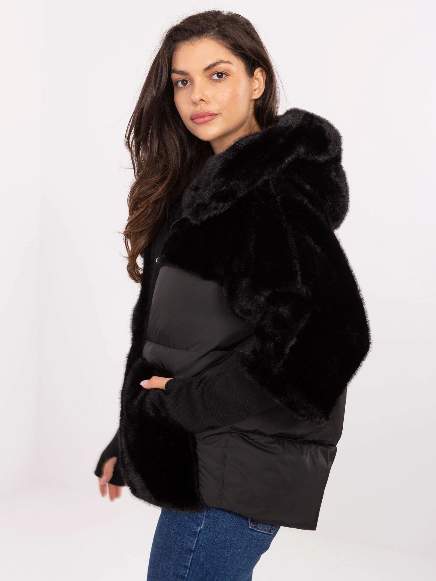 Černá volná bunda z různých materiálů model 21469342 - Factory Price