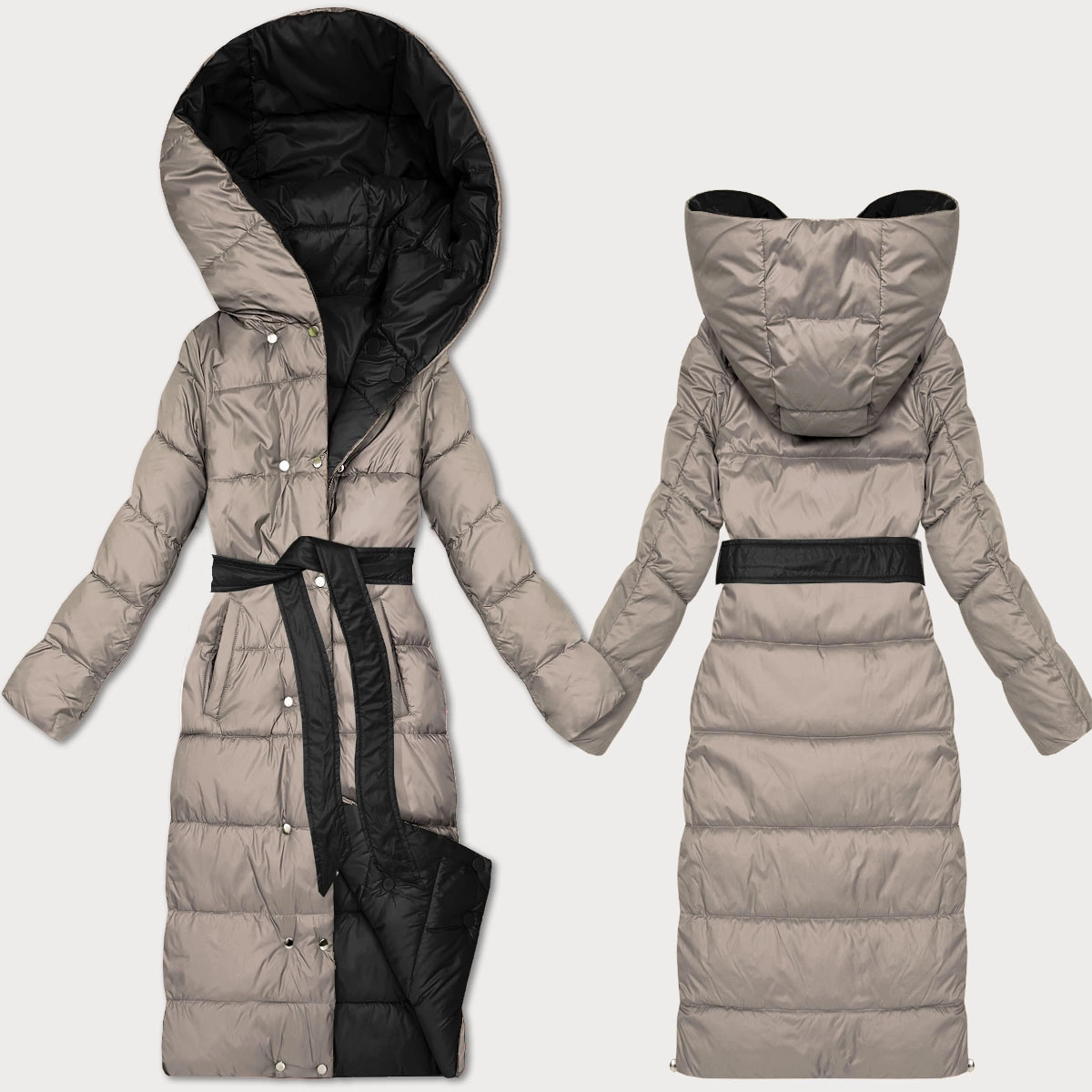 Černo-béžová oboustranná zimní bunda s páskem Minority (M2-6519-1+62)
