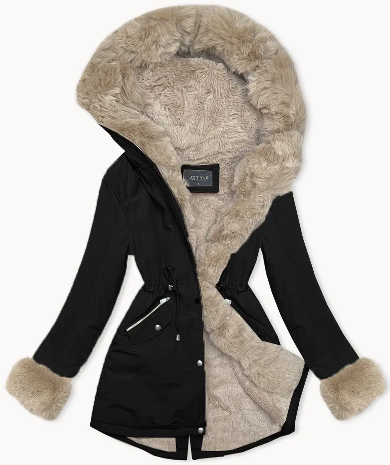 Černobéžová krátká zimní bunda parka s kožešinovou podšívkou model 21248762 - J.STYLE