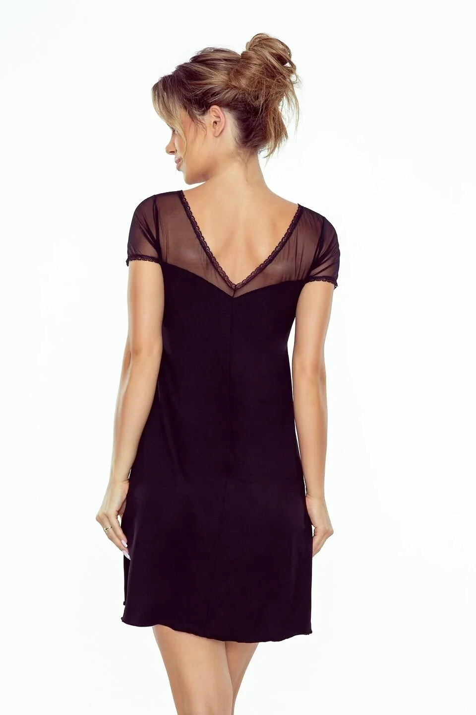 - výstřih a rukávy z průhledné síťoviny a krajky
