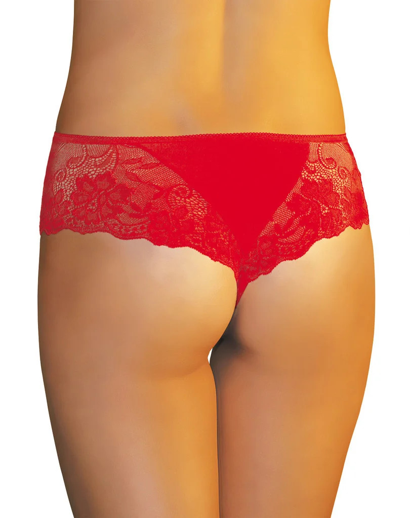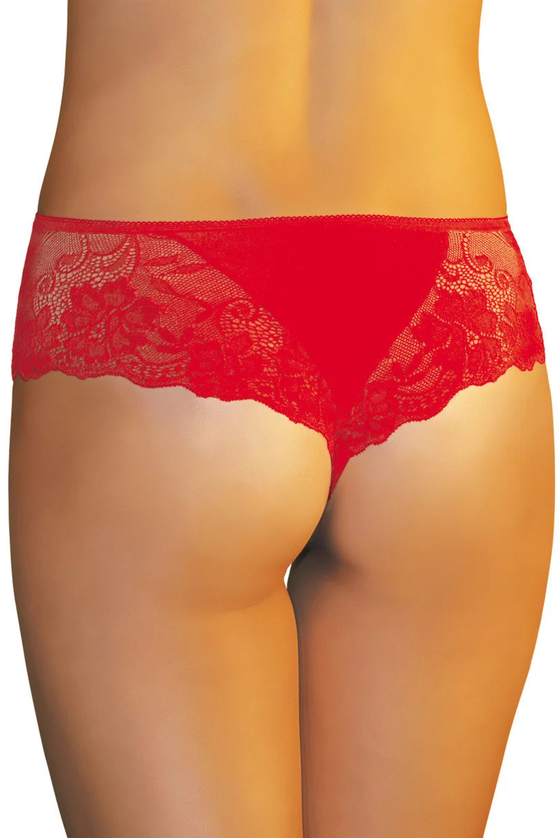 Dámská tanga z kvalitní bavlny a 5% elastanu. Vzadu je ažurová kPunčochové kalhotya s květovaným motivem.