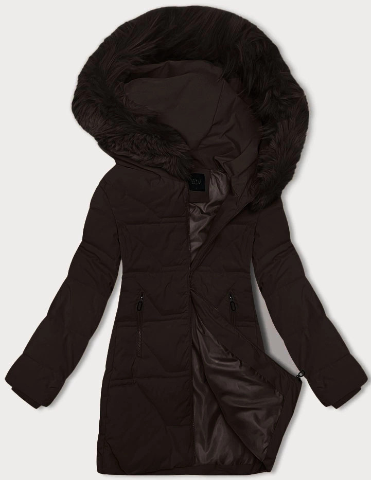 Dámská zimní bunda v čokoládové barvě s kapucí model 21439668 - J.STYLE