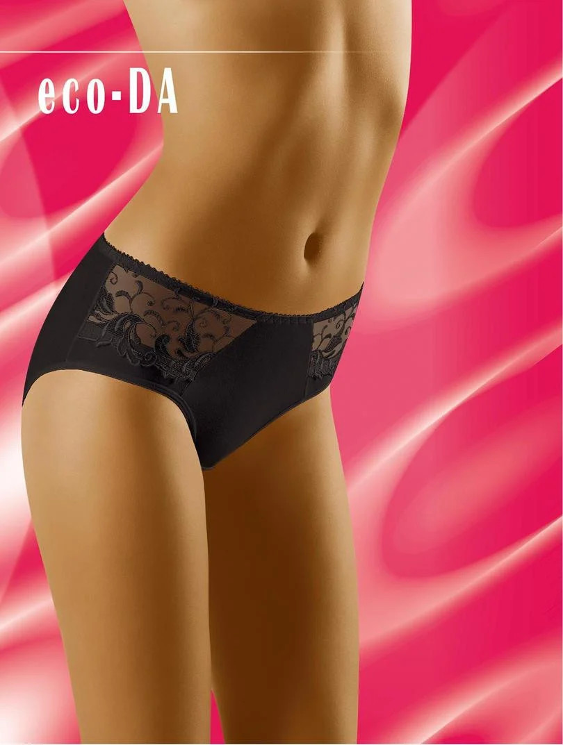 Dámské kalhotky z kvalitní bavlny. Vpředu jsou všivky z jemného tylu s vyšívaným květovaným vzorem. Jsou vyšší, zpevněné v bocích. 90% bavlna. 7% elastan (polyuretan), 3% polyamid.