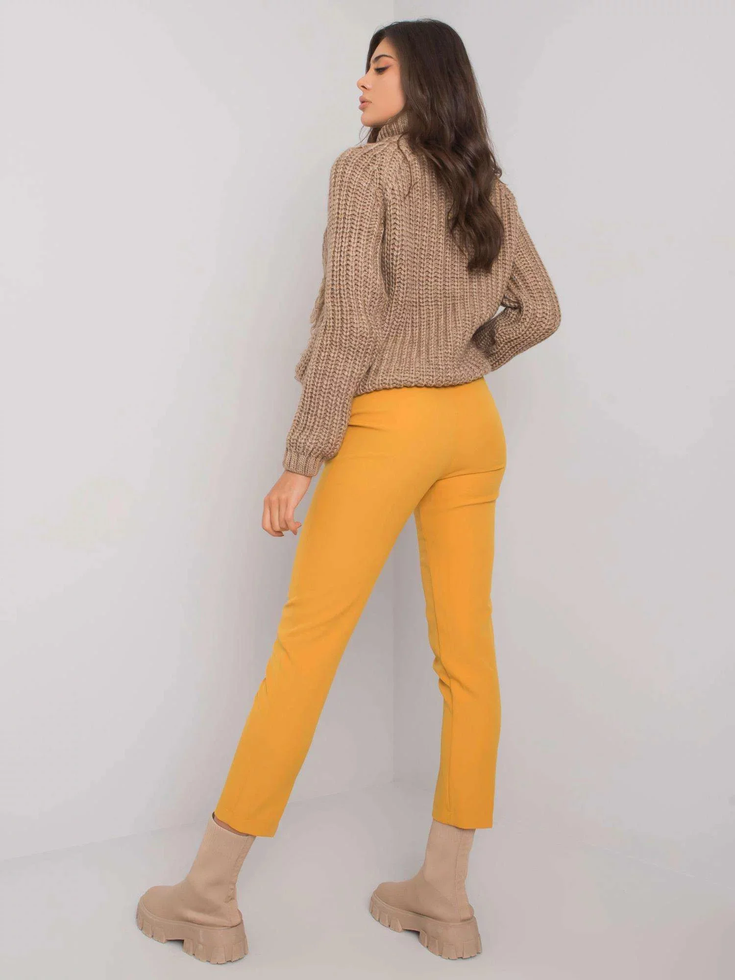 Dámské hořčicové elegantní kalhoty .