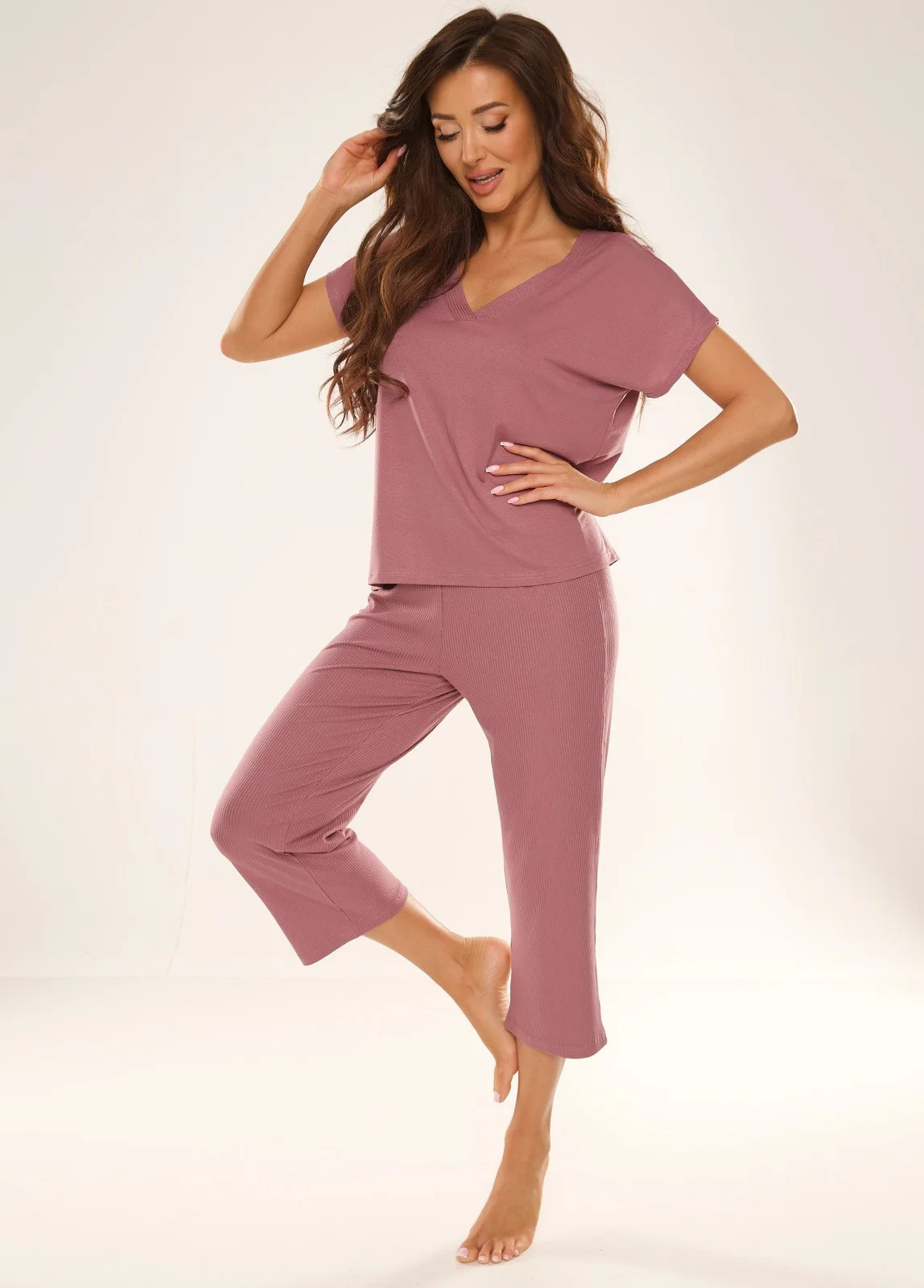 - kalhoty a výstřih z žebrované viskózy