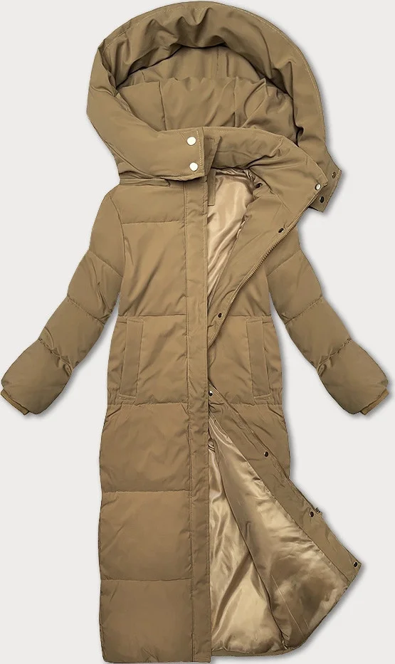 Dlouhá bunda kabát ve velbloudí barvě s střihem model 21248900 - STELLA FASHION