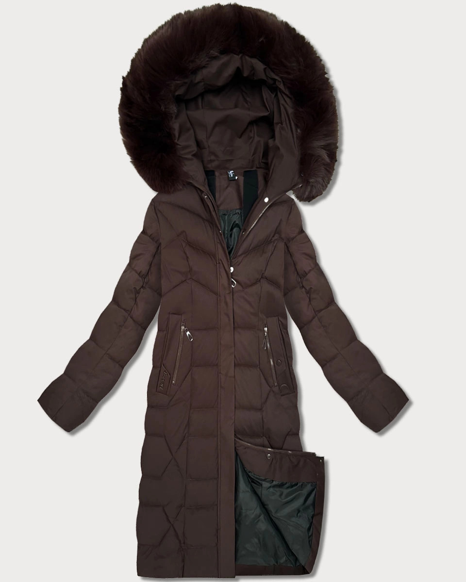Dlouhá hnědá dámská bunda s kapucí model 21785356 - ROSSE LINE