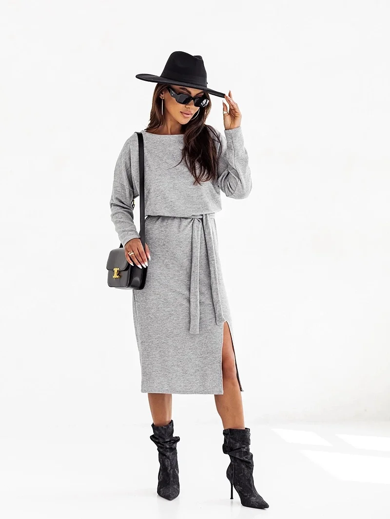 Přidání recenze k Elegantní šedé dámské midi šaty s páskem model 20524331 - Moon