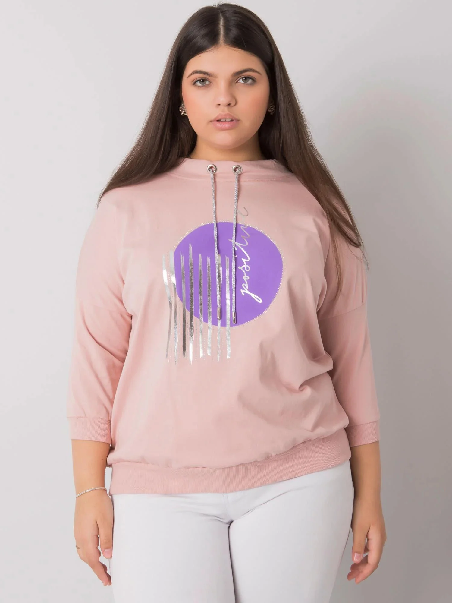 Oversize halenka s potiskem model 18743440 rtů tmavě pudrově růžová - K-Fashion