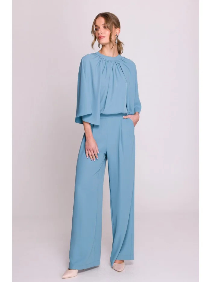 Kombinéza s širokými rukávy a zády modrá model 20966219 - STYLOVE