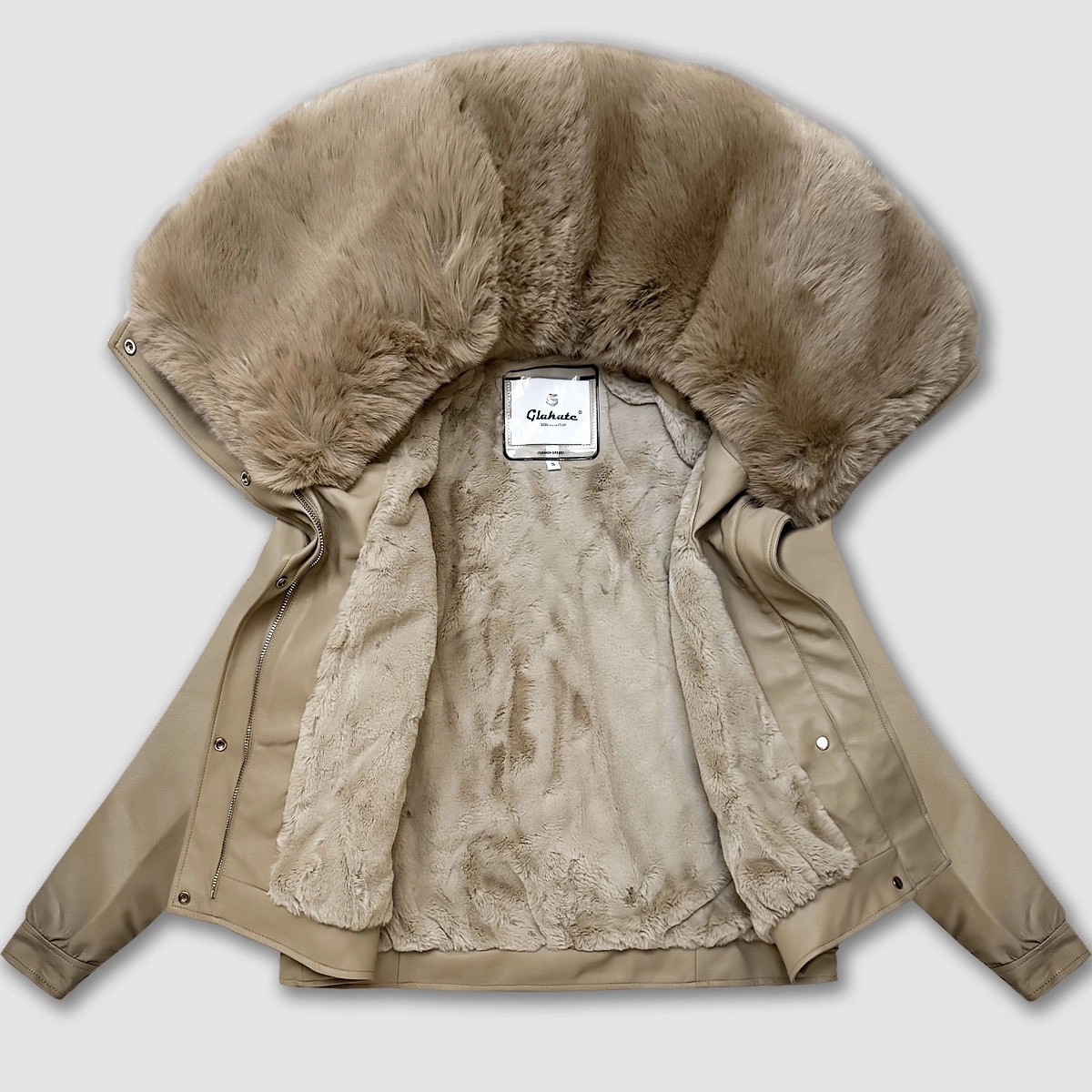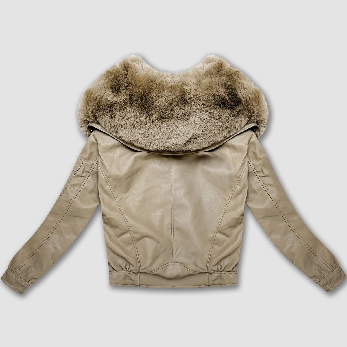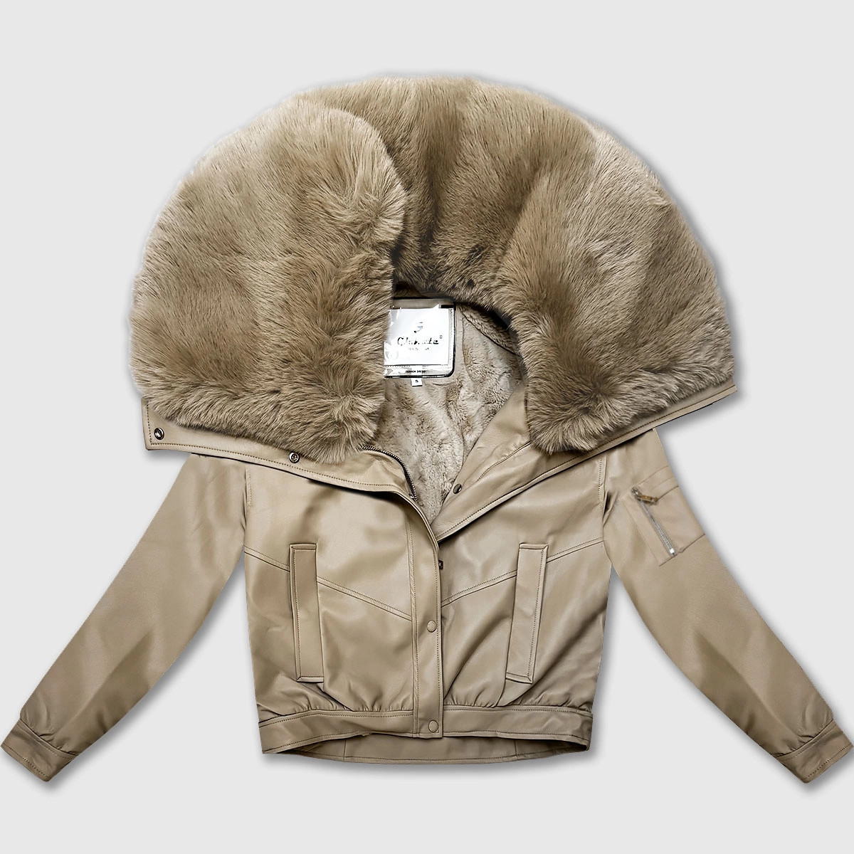 Přidání recenze k Kožená bunda v teplé béžové barvě s velkým límcem model 21785351 - Glakate