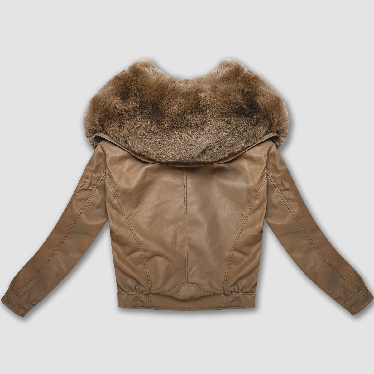 Kožená bunda ve velbloudí barvě s velkým límcem model 21809040 - Glakate