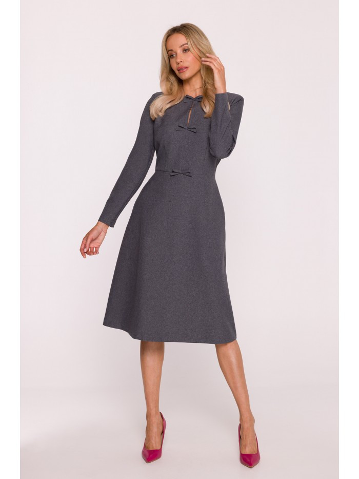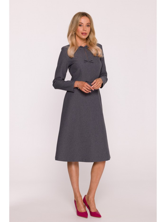model 21319075 Šaty s mašlemi šedé - STYLOVE