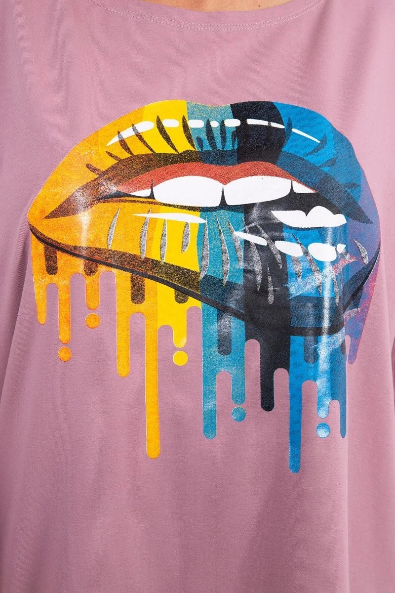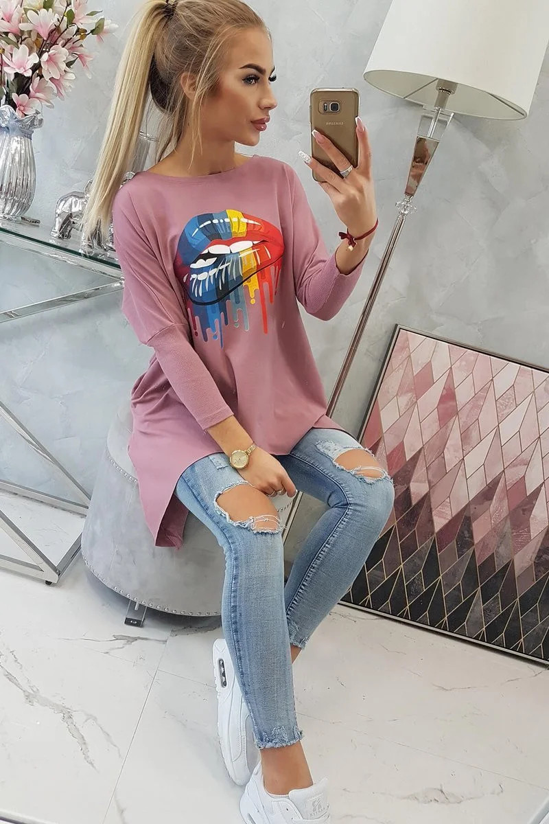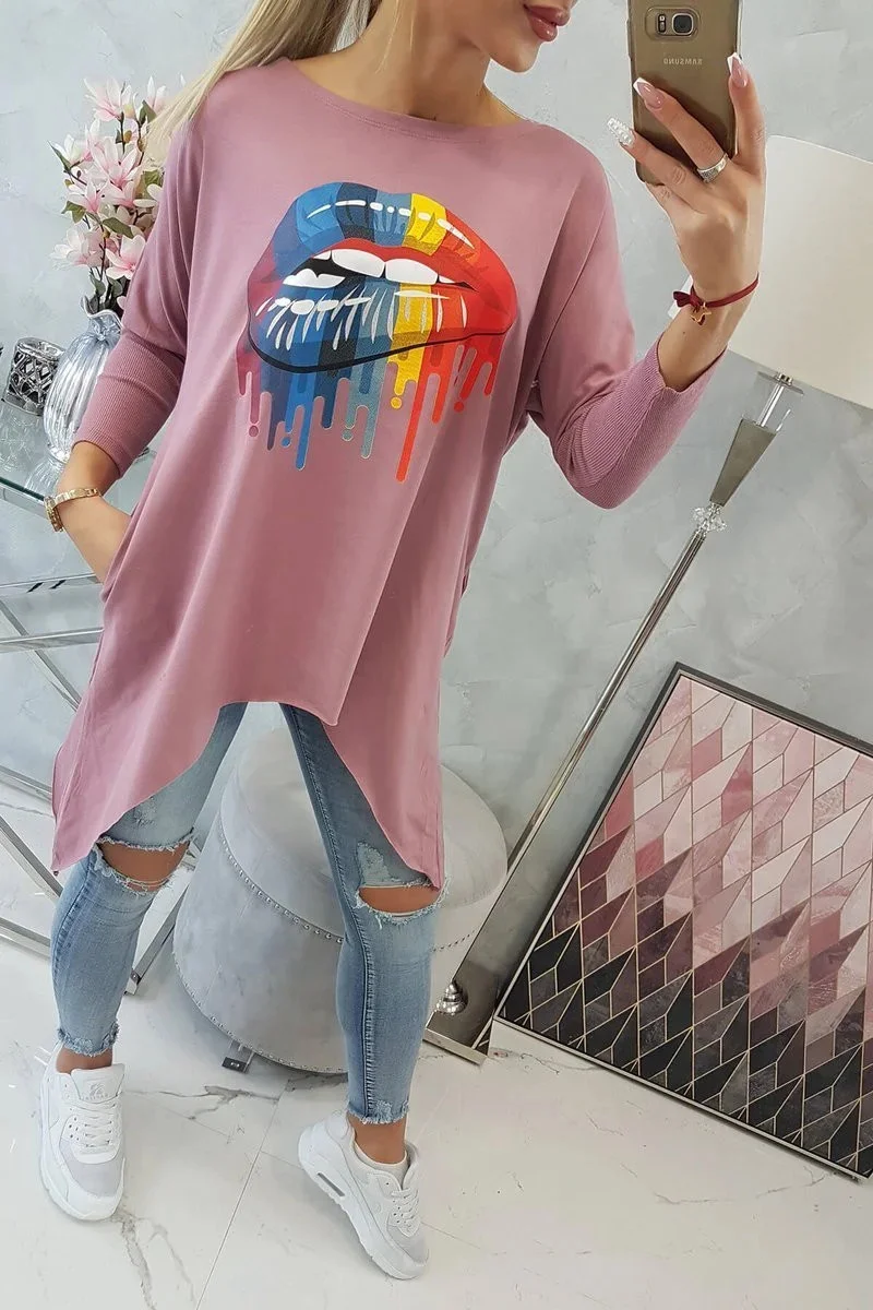 Zašlete nám Váš dotaz - Oversize halenka s potiskem model 18743590 rtů tmavě růžová - K-Fashion