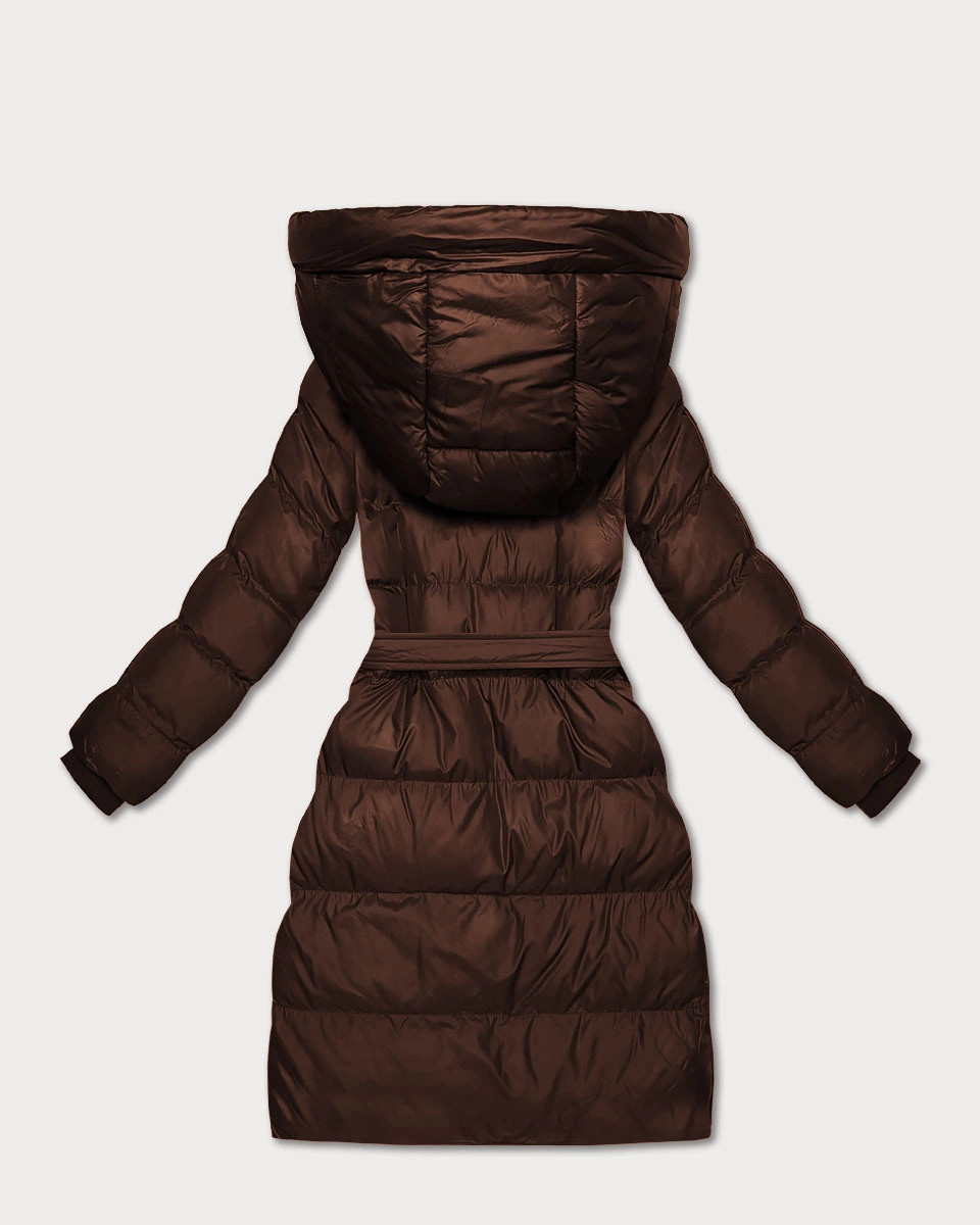 Prošívaná zimní bunda v čokoládové barvě s páskem model 21748221 - J.STYLE