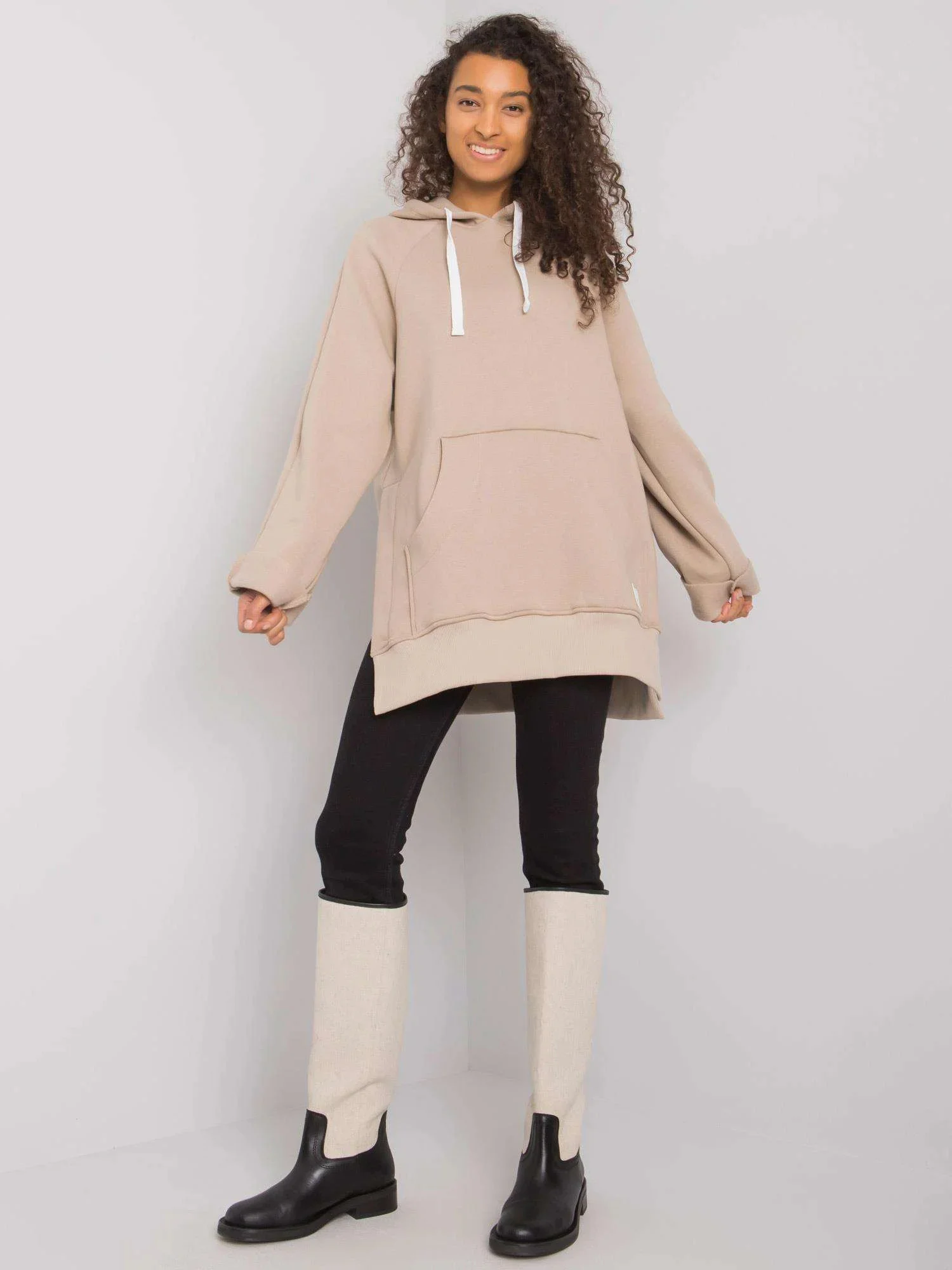 Zateplená mikina se zipem na boku tmavě béžová