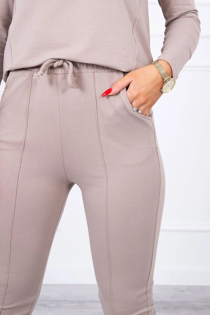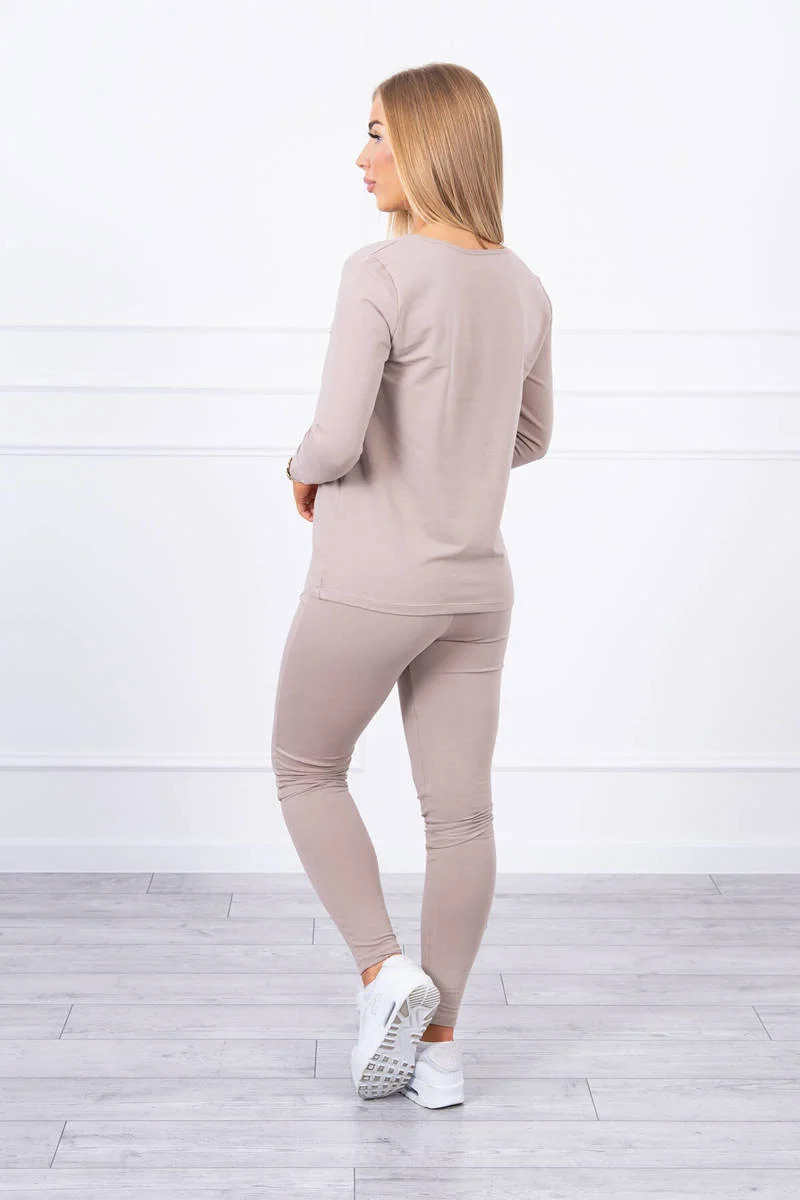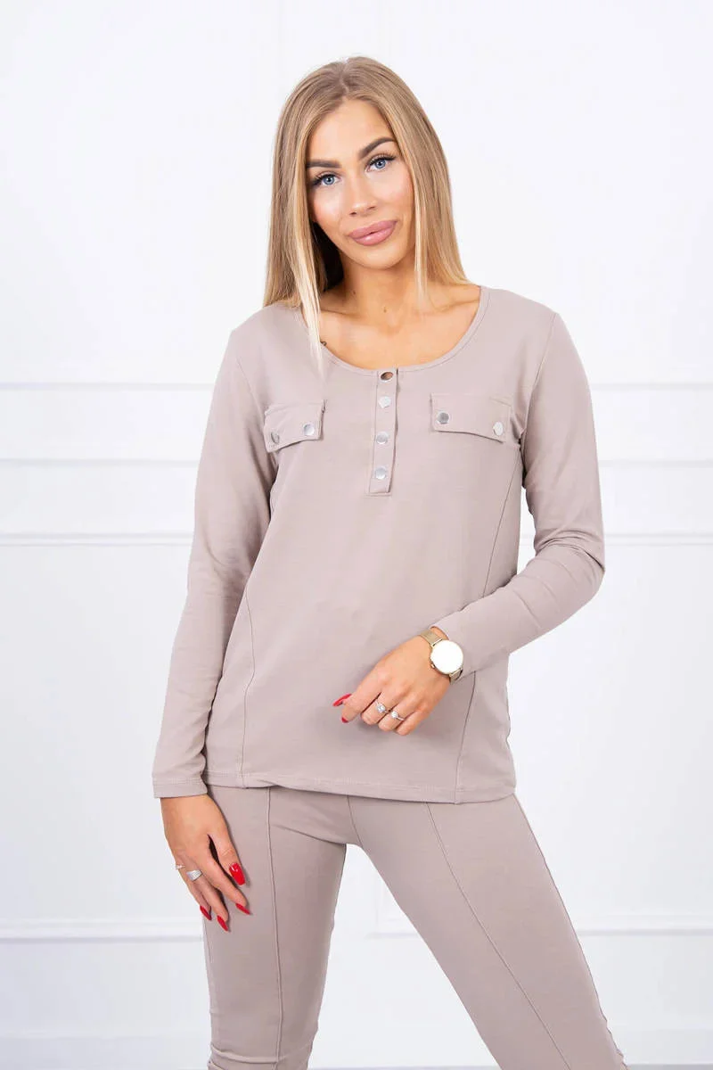 Sada s knoflíkovým výstřihem tmavě béžová