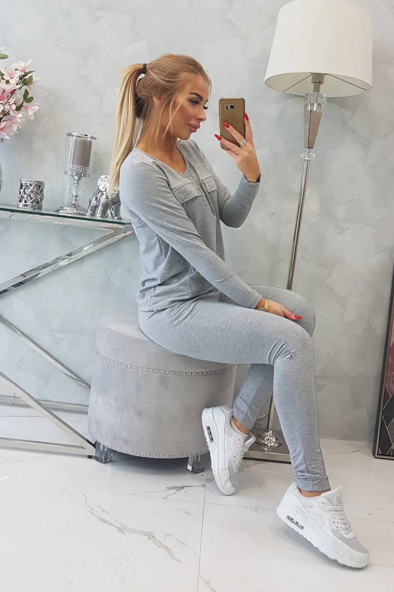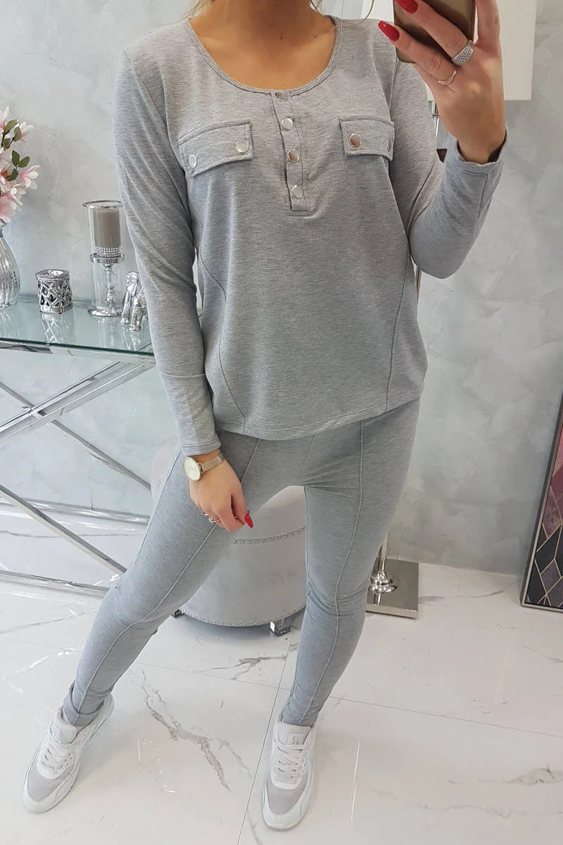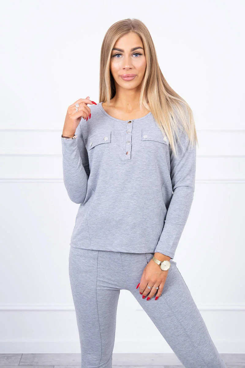 Sada s knoflíkovým výstřihem šedé barvy