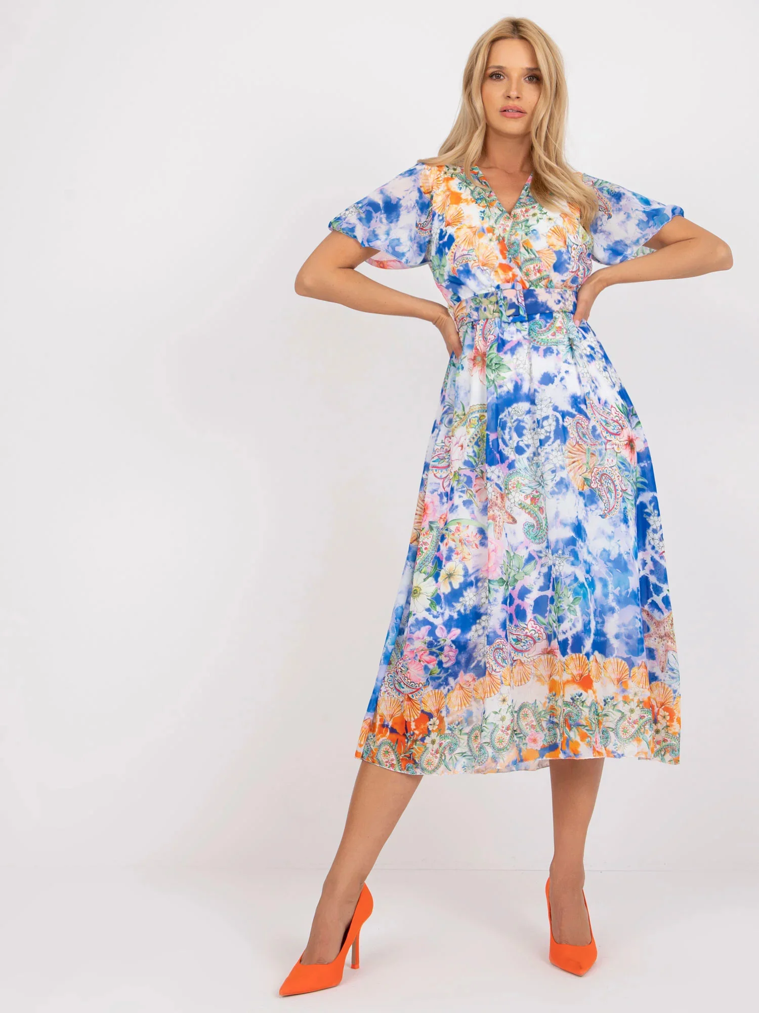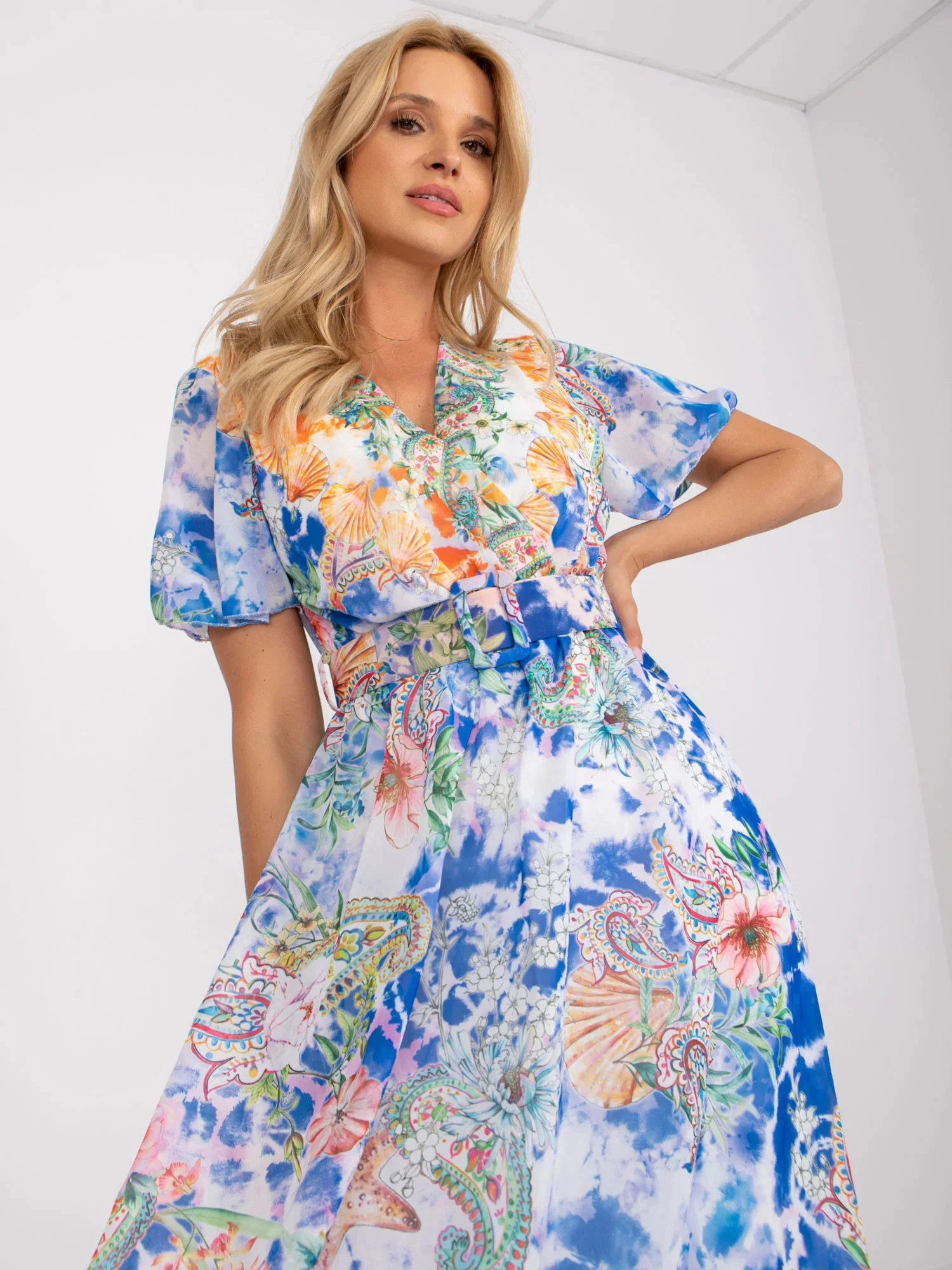 Květinové šaty s výstřihem do V model 18746624 - K-Fashion