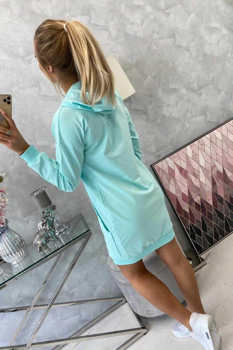 Šaty s kapucí v mátové barvě