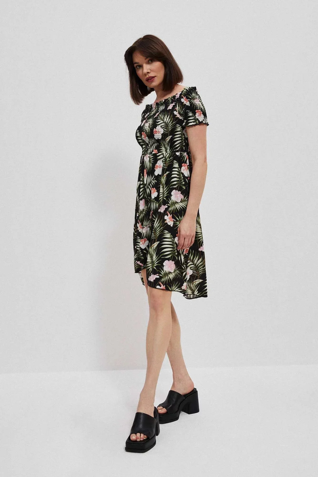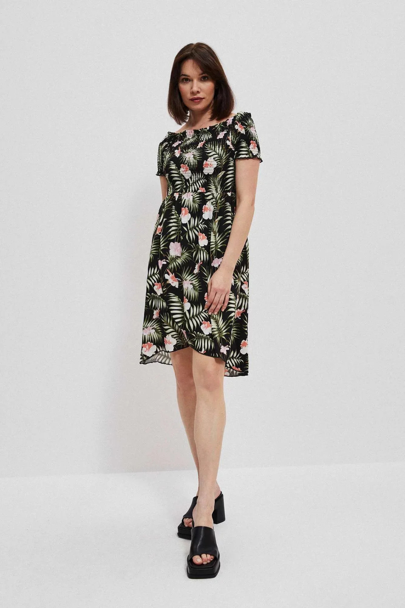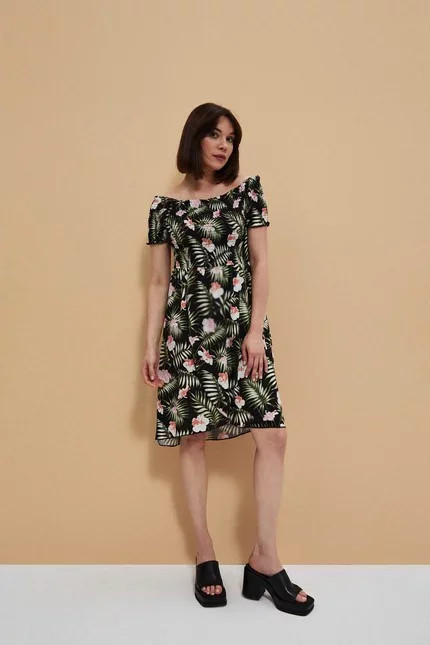 Představujeme vám módní šaty. Španělské šaty s odhalenými rameny. Módní ozdůbky. Pružná guma všitá do výstřihu. Šaty jsou vyrobeny z vysoce kvalitního materiálu. Velikost je univerzální a vyhovuje dámám, které nosí velikost S, M nebo L.