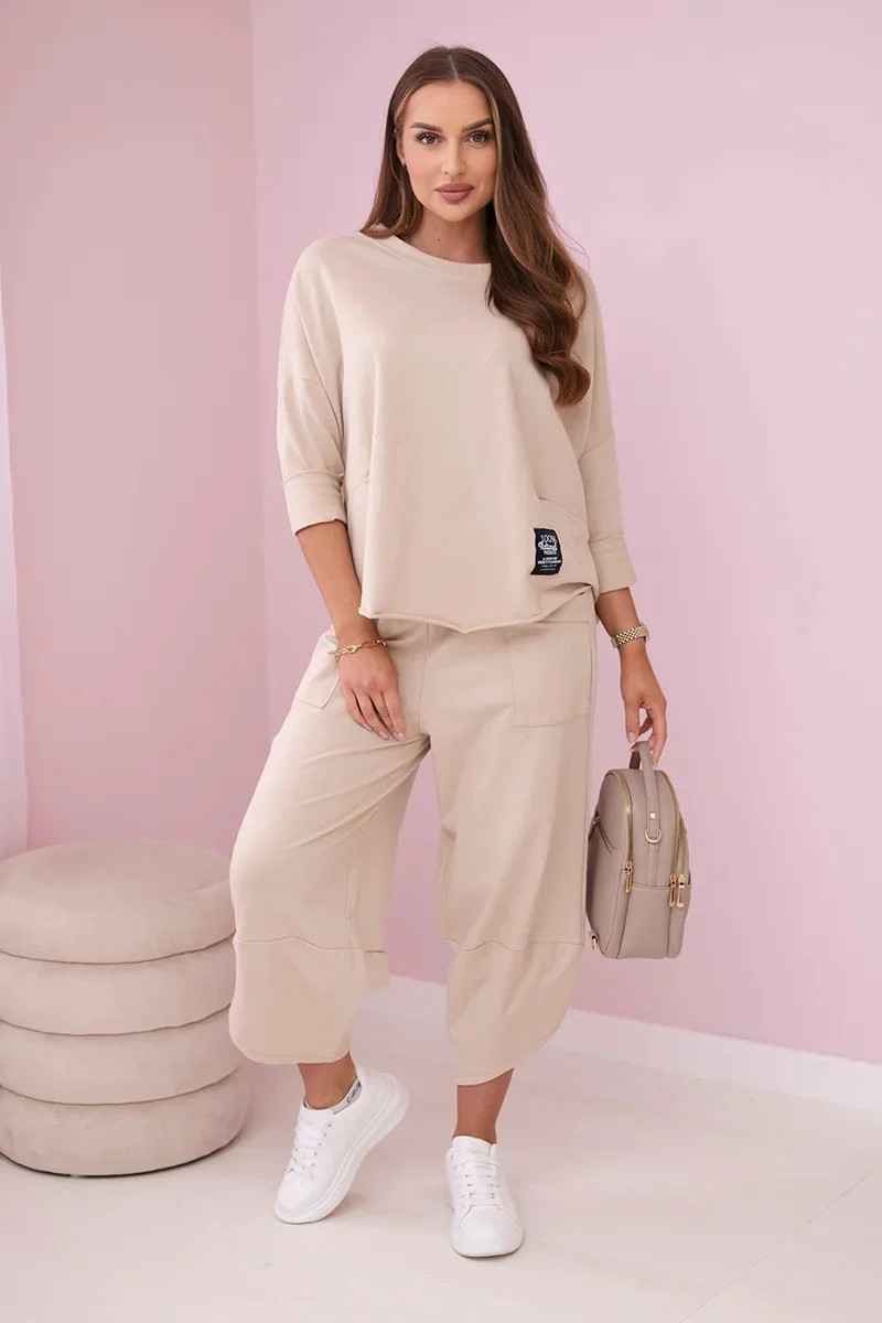 Zašlite nám Váš dotaz - Bavlnená mikina nohavice set béžová