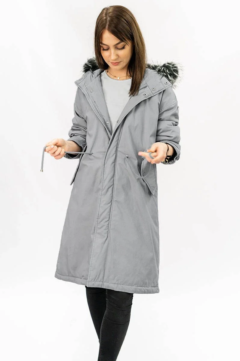 Zašlite nám Váš dotaz - BAWEŁNIANA PARKA DAMSKA ZIMOWA Z PUCHEM NATURALNYM SZARA (7085)