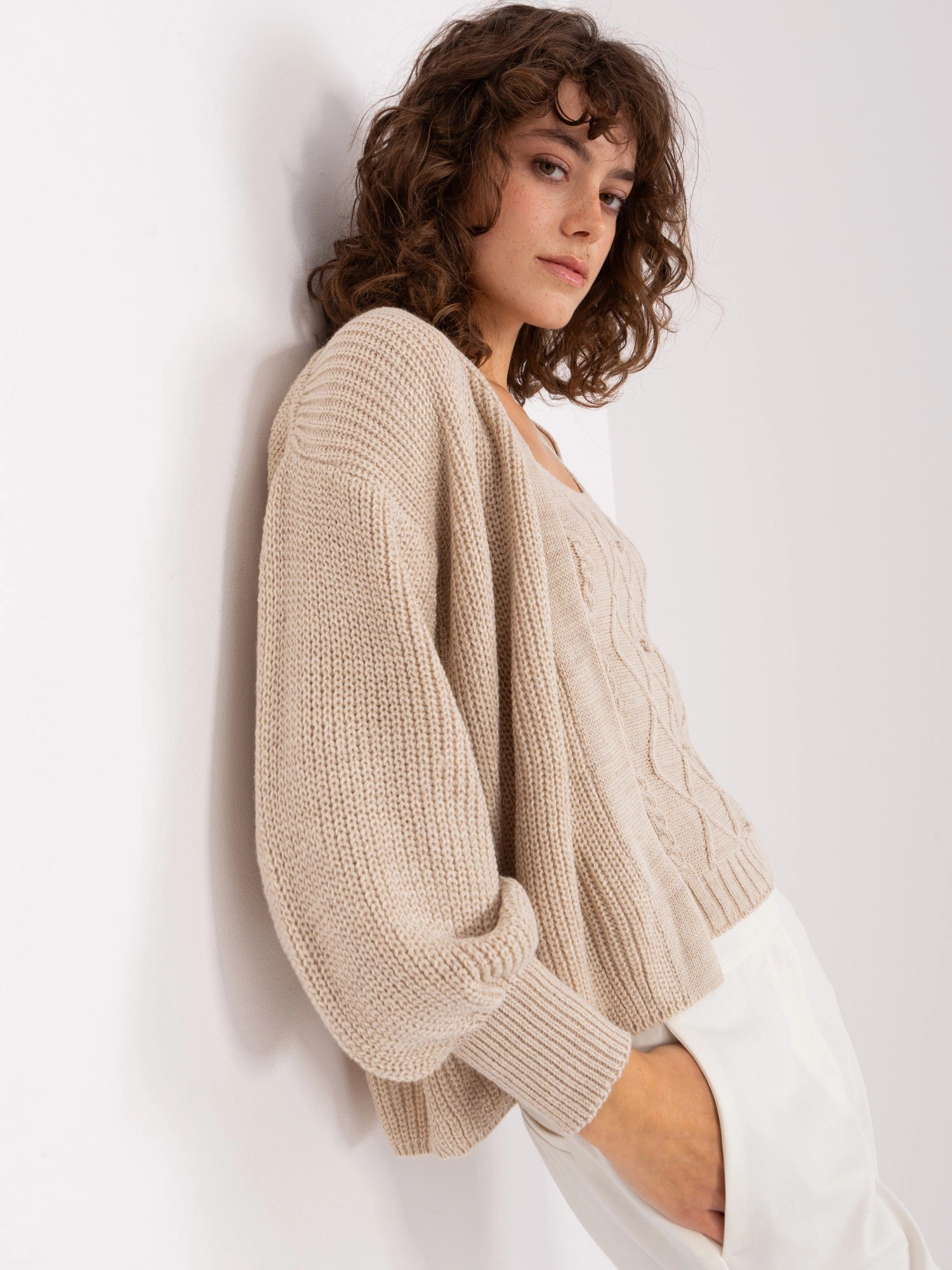 Béžový dámsky dvojdielny set - top a sveter (8019)