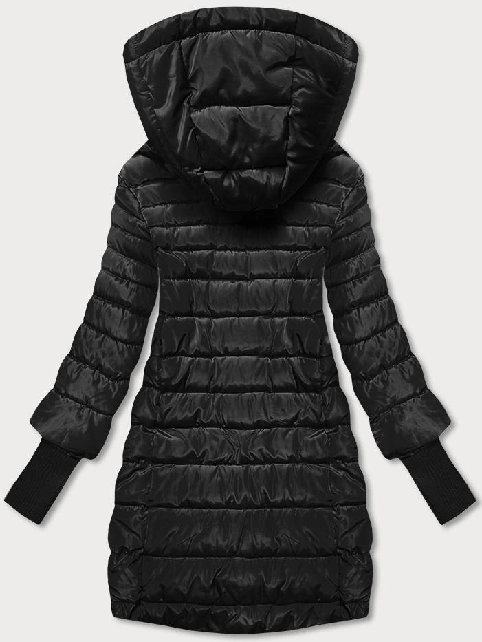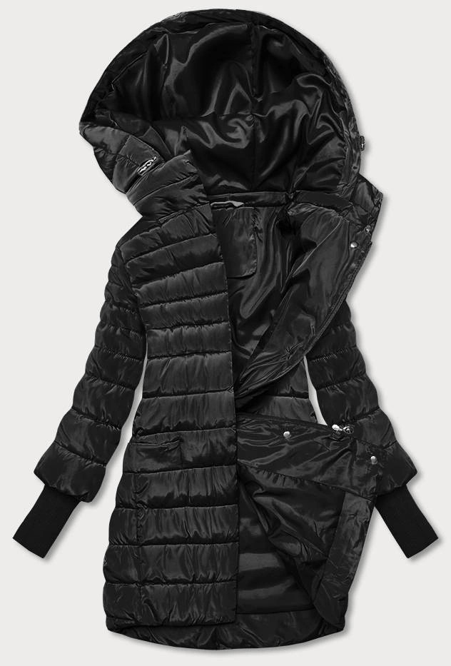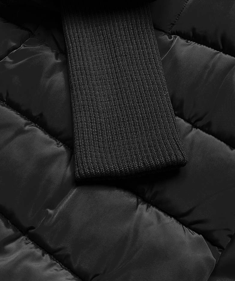 Čierna dámska bunda s úpletovým lemom (P22-6637/6682-1)