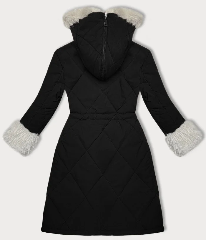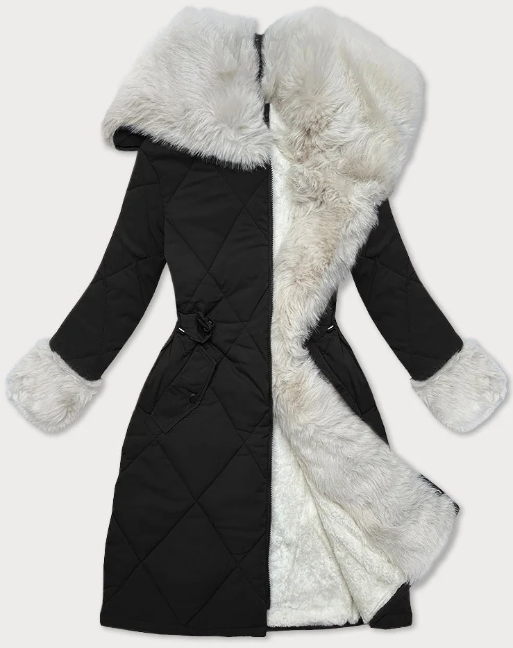 Čierno-béžová prešívaná zimná bunda s kožušinovou podšívkou Way Mode (WD202308)