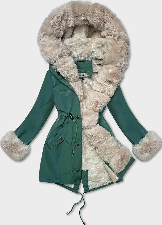 Zašlite nám Váš dotaz - Dámska bunda parka v tmavom mätovom odtieni s kožušinovou podšívkou Way Mode (DG22988)