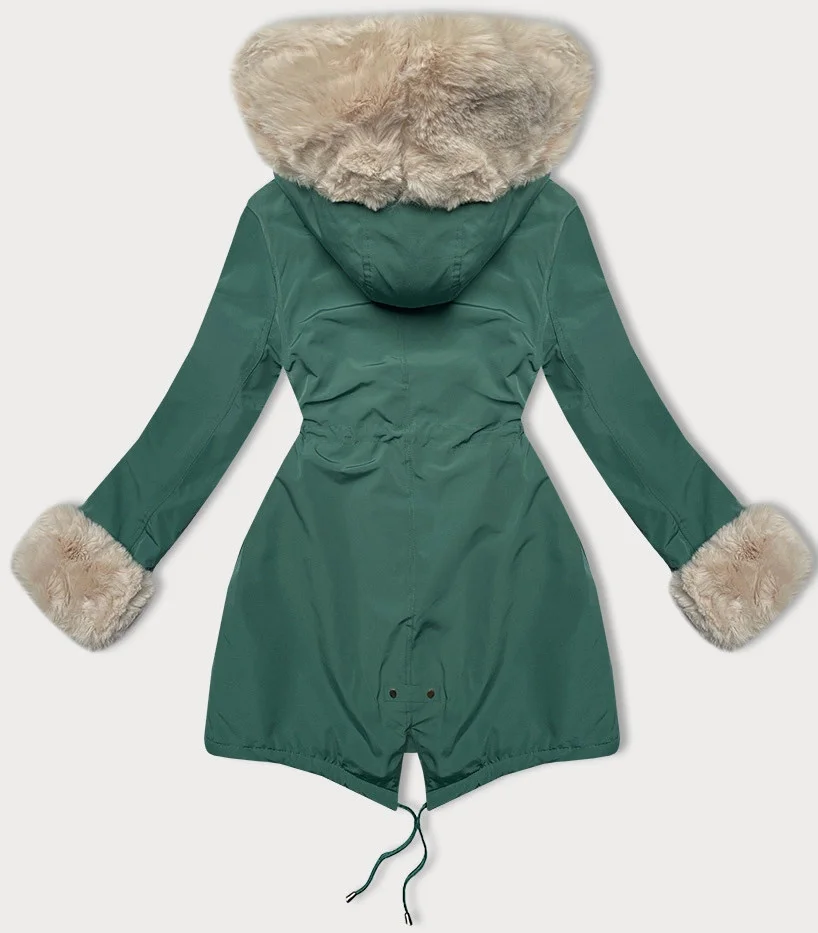 Dámska bunda parka v tmavom mätovom odtieni s kožušinovou podšívkou Way Mode (DG22988)