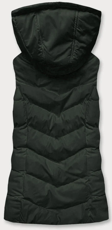 Dámska pérová vesta v army farbe s kapucňou (5M720-136)