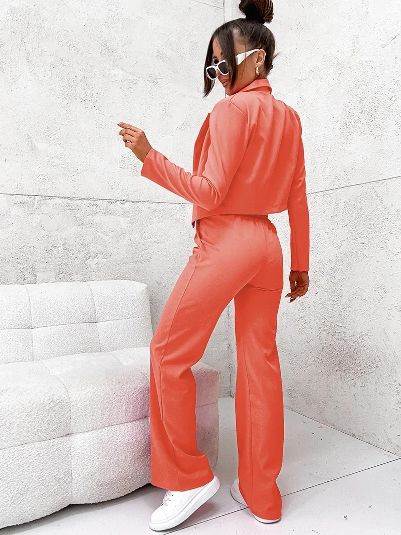 Zašlite nám Váš dotaz - Dámska súprava v koralovej farbe - krátke sako a široké nohavice (8263)