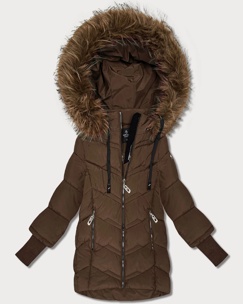 Dámska zimná bunda s pletenými rebrovanými manžetami Goodlookin hnedá (KK60615)