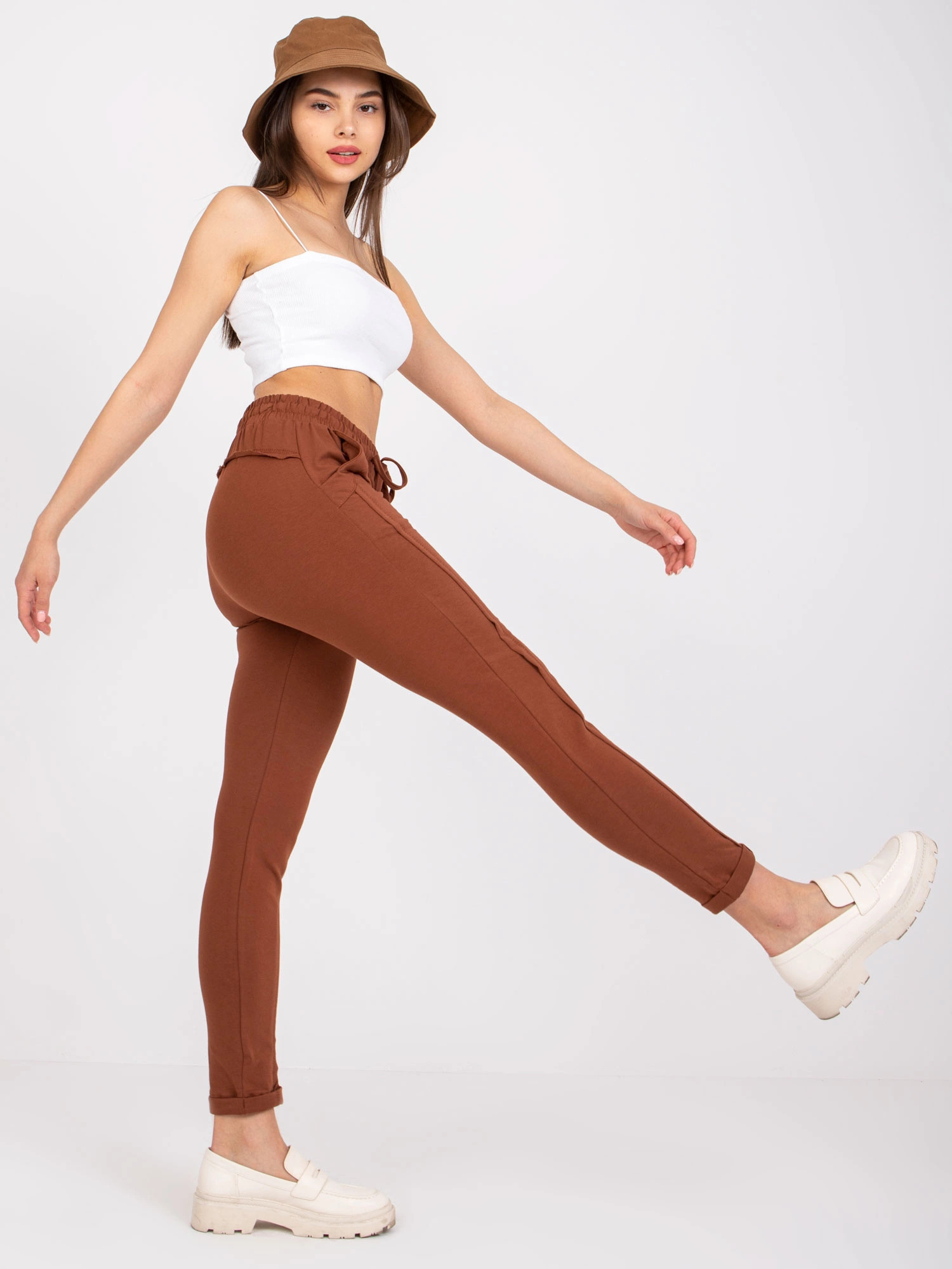 Dámske hnedé úpletové nohavice chino (3589.62)