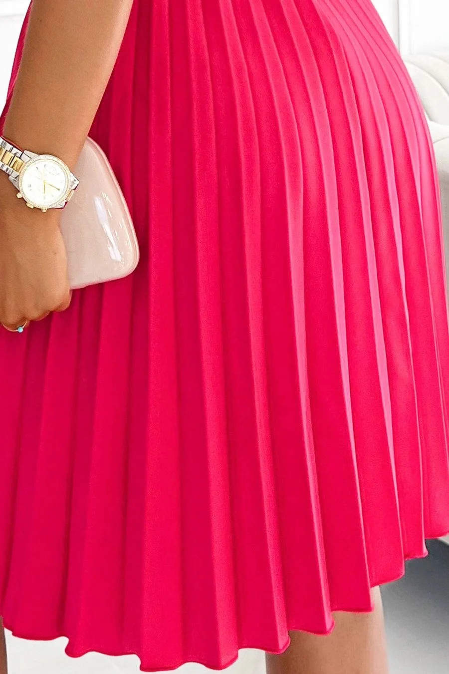 Elegantné šaty 385-2 WENDY Numoco - midi šaty - krátke rukávy - na zaväzovanie - prekrížený dekolt - riasená sukňa