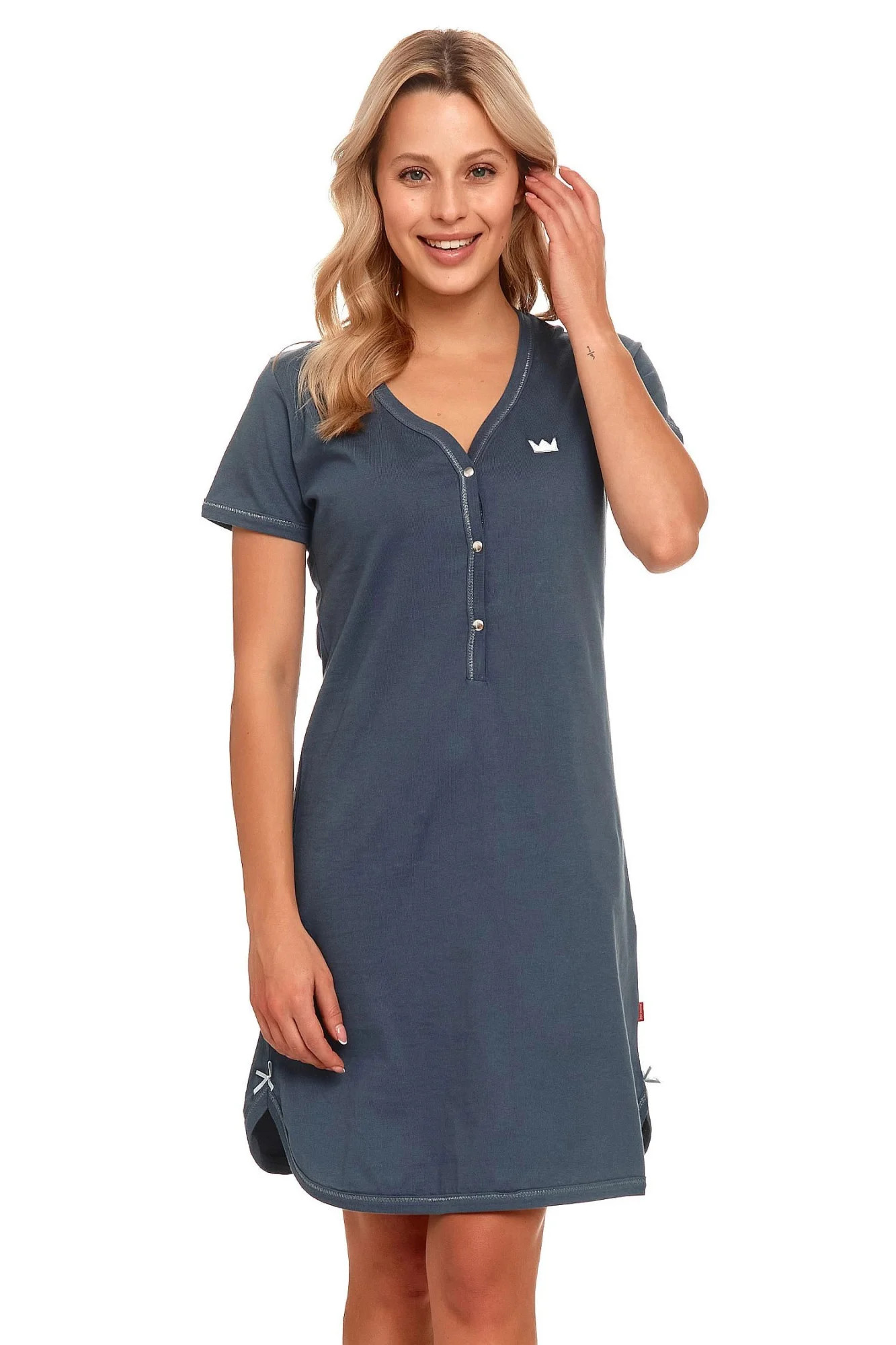 Dámske tehotenské tričko 9505 modré Doctornap - tmavomodré - vyrobené z kvalitnej a príjemnej bavlny - s krátkymi rukávmi - zapínanie na gombíky - ideálne pre tehotné a dojčiace ženy - hypoalergénne