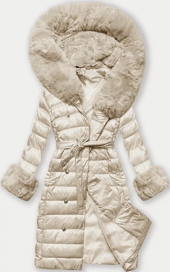 Dámsky páperový kabát v perleťovej farbe so zapínaním na gombíky (5M3160/1-281)