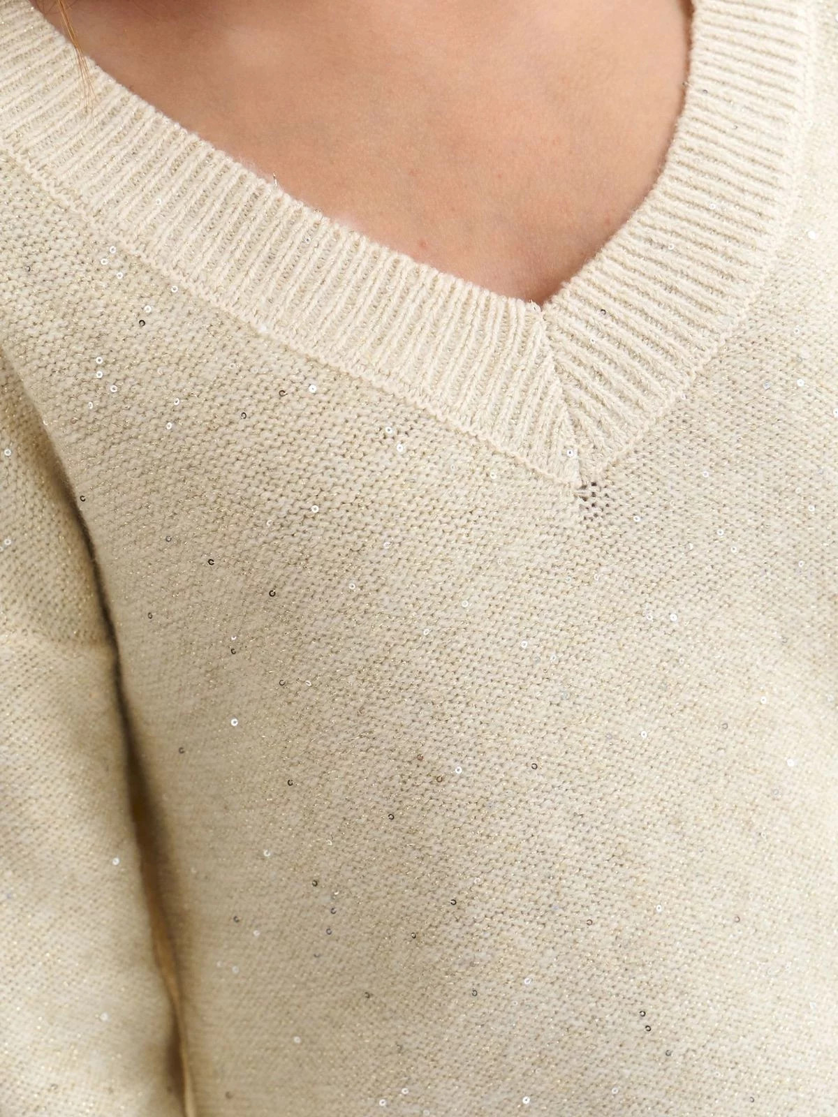 Dámsky sveter SSW3619 Ecru so zlatou niťou - Top Secret