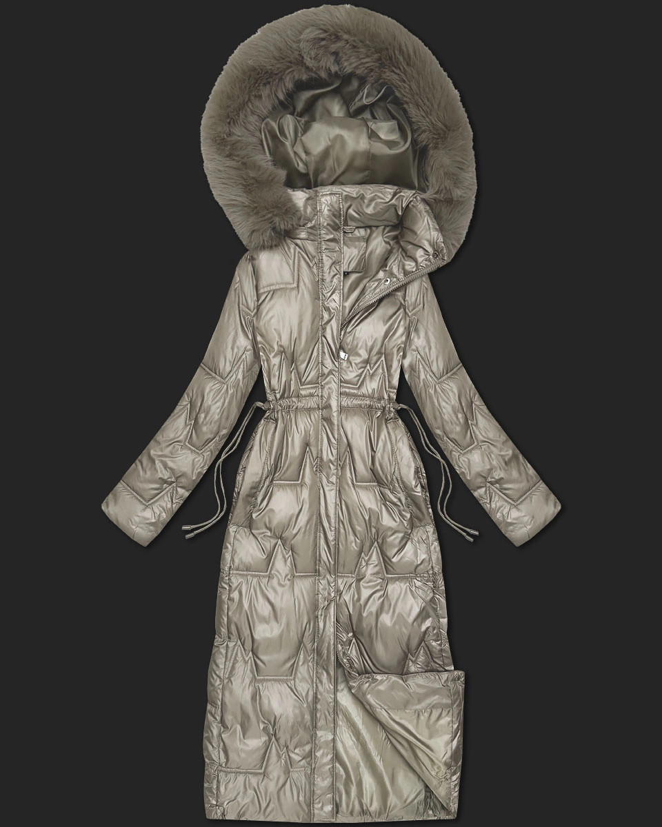 Dlhá béžová dámska prešívaná zimná bunda (T2-2221#-62)
