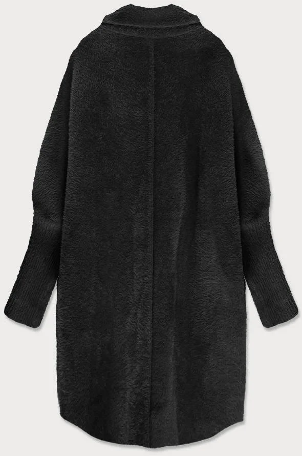 Dlhý čierny vlnený prehoz cez oblečenie typu "alpaka" (7108)