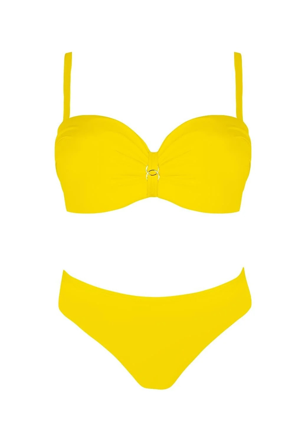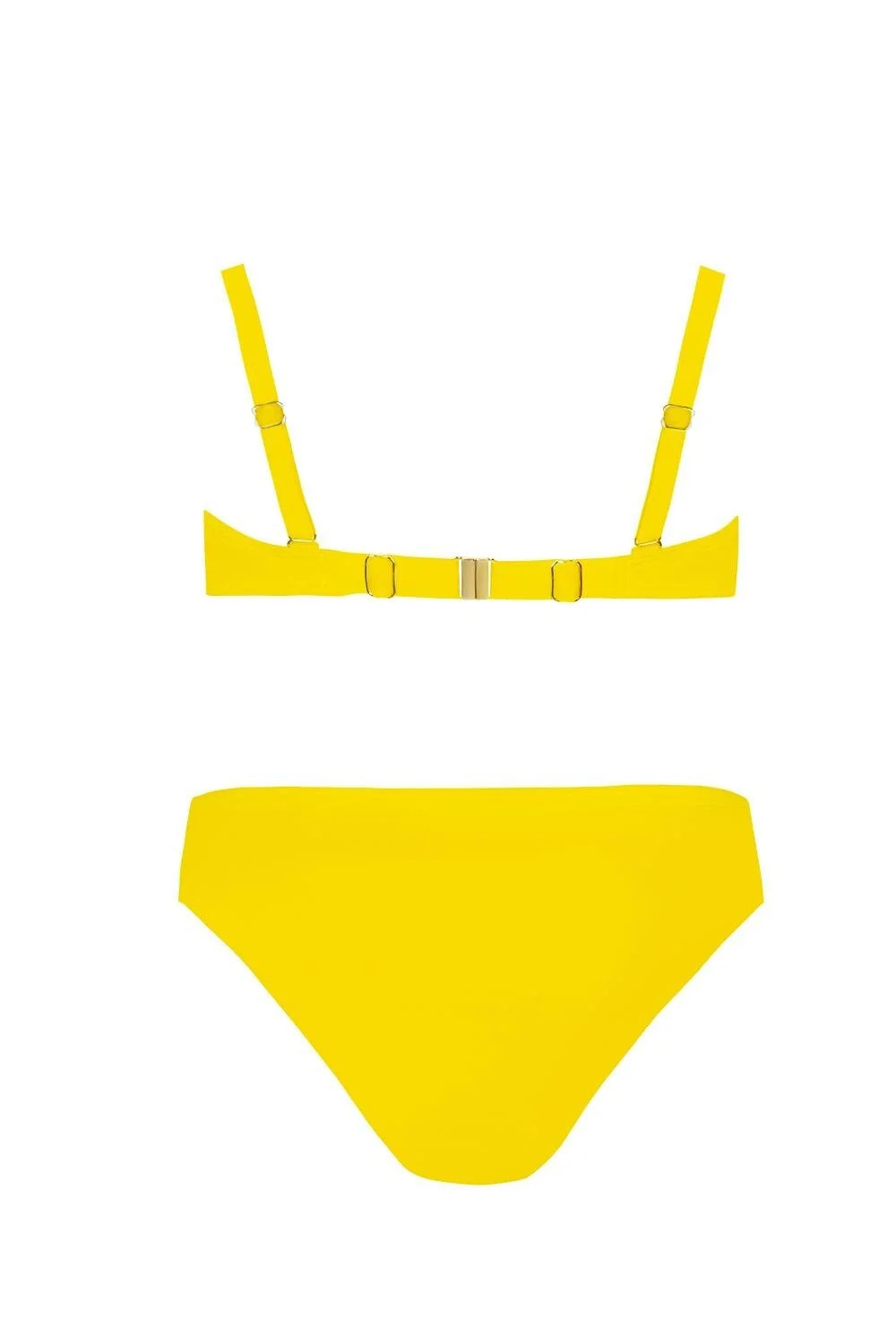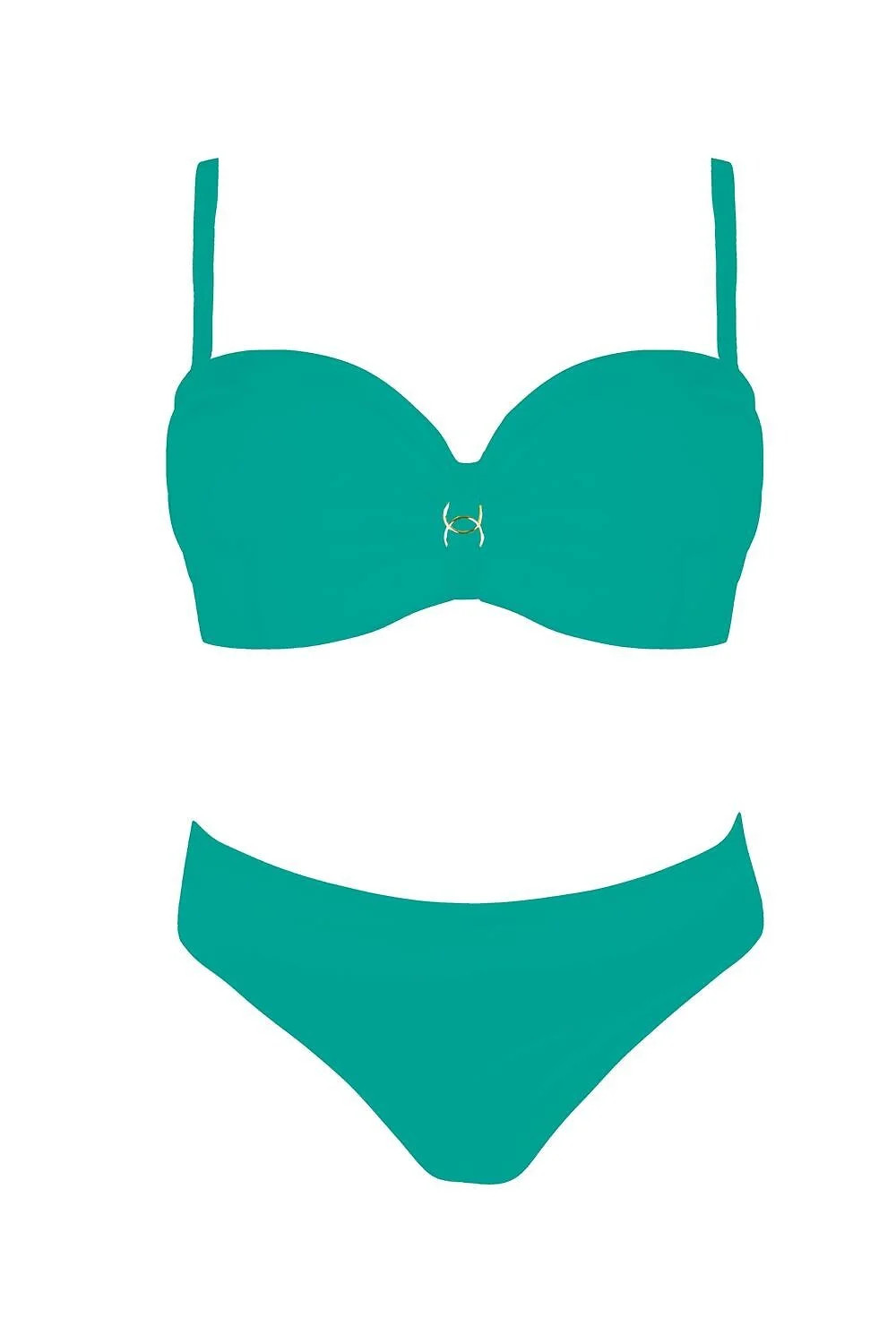 Plavky, dvojdielne - hladká podprsenka, s vystuženými košíčkami, s kosticami - push-up vo veľkostiach: 36C/D, 38B/C, 40B/C, 42B - odnímateľné, nastaviteľné ramienka - zadná časť s nastaviteľným obvodom, zapínanie na kovovú sponu - hladké nohavičky