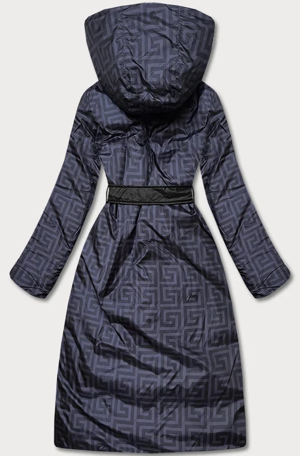 DWUSTRONNA DŁUGA KURTKA Z KAPTUREM CZARNA (P22-6635-1)